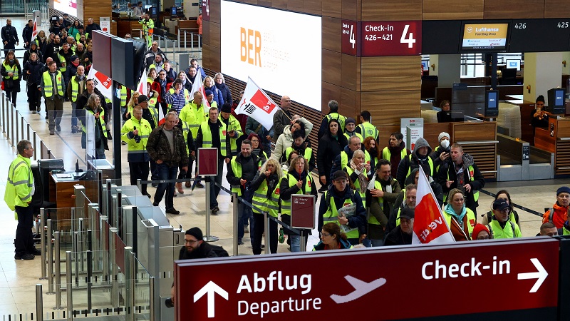 ودعت نقابة فيردي العمال إلى إضرابات تحذيرية في مطارات برلين وهامبورغ وهانوفر وبريمن. وأفادت وكالة الأنباء الألمانية (د ب أ) بأنه تم إلغاء نحو 200 رحلة مغادرة في برلين، ومن المتوقع إلغاء نحو ثلث الرحلات القادمة.