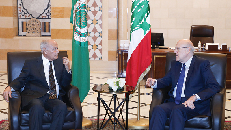 أبوالغيط خلال لقائه نجيب ميقاتي. عن «دالاتي ونهرا»