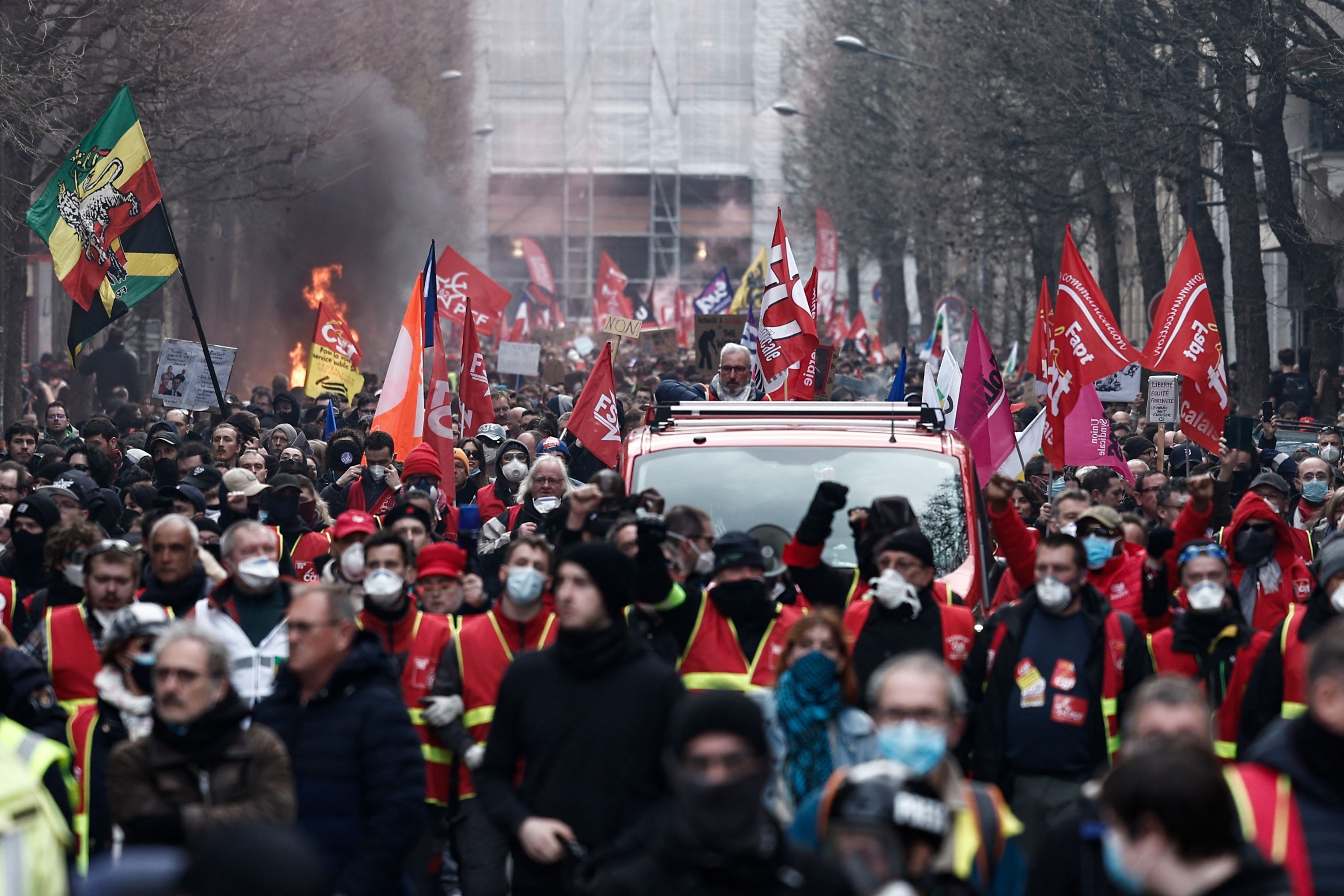 تظاهر ما مجموعه 3.5 ملايين شخص الخميس في مختلف أنحاء فرنسا وفق نقابة "سي جي تي"، فيما اقتصر العدد بحسب وزارة الداخلية على 1.08 مليون في يوم تاسع من التعبئة ضد تعديل نظام التقاعد اتّسم بزيادة واضحة في المشاركة.