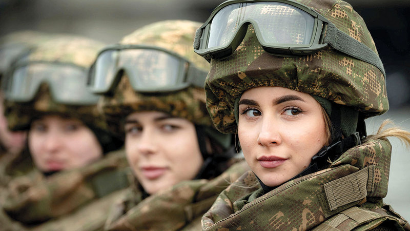 خريجات الأكاديمية العسكرية للحرس الوطني الأوكراني خلال احتفال في كييف. رويترز