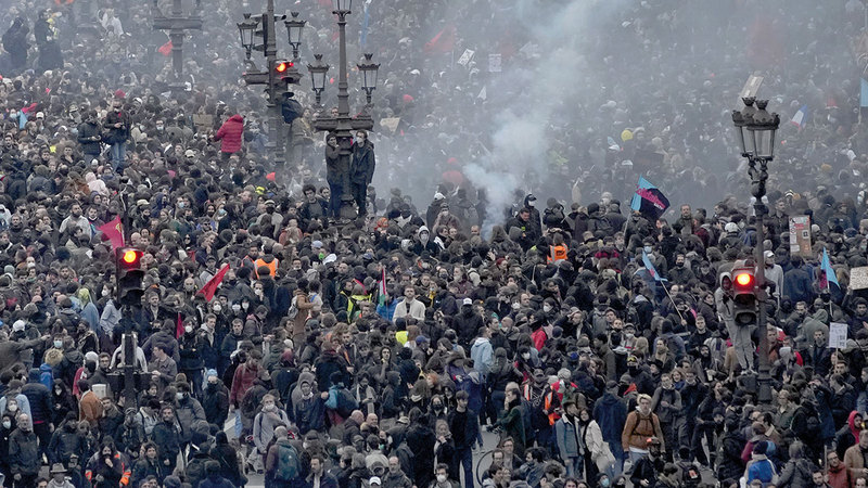 واندلعت احتجاجات في فرنسا أول من أمس حيث وصل الاعتراض على رفع سن التقاعد إلى مستويات جديدة، مع اشتعال الاحتجاجات في بوردو ونانت ورين، وقد استخدمت قوات الشرطة في باريس الغاز المسيل للدموع.