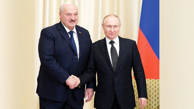 خلال لقاء سابق بين بوتين ورئيس روسيا البيضاء ألكسندر لوكاشينكو. ■ رويترز