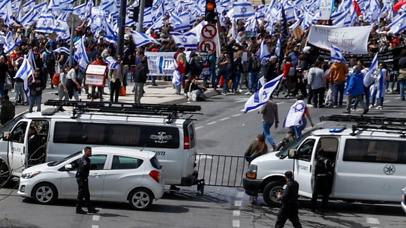 ومن المتوقع أن يوجّه رئيس الوزراء الإسرائيلي بنيامين نتانياهو كلمة في وقت لاحق الإثنين. وذكرت تقارير أنه يتجه لوقف التعديلات التشريعية التي تثير جدلا.