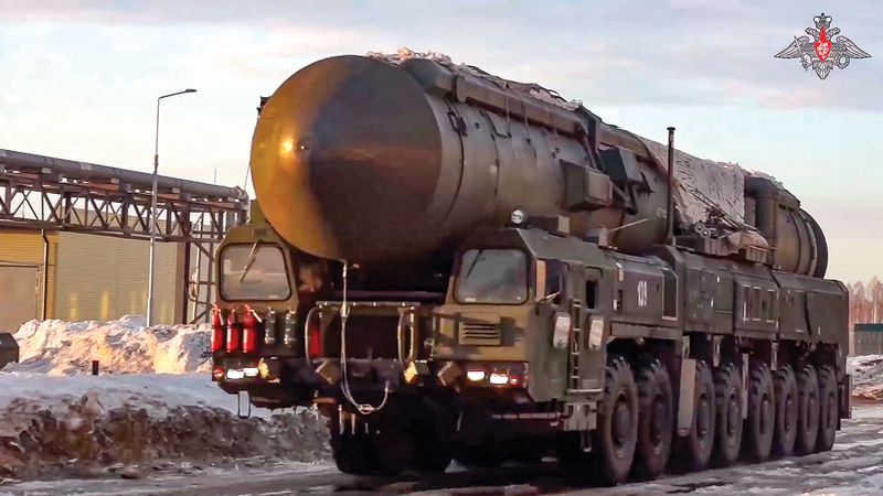 بدأ الجيش الروسي تدريبات لقواته الصاروخية الاستراتيجية أمس، فنشر قاذفات متحركة في سيبيريا في استعراض للقدرات النووية الهائلة للبلاد وسط القتال في أوكرانيا، فيما توقع الكرملين أن «يطول» أمد «الحرب الهجينة» بين روسيا والدول الغربية بشأن النزاع في أوكرانيا بعد أكثر من سنة على بدء الحرب.