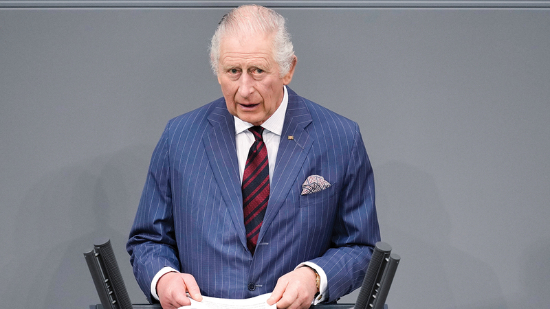 والتقى تشارلز المستشار الألماني أولاف شولتس في برلين، أمس، قبل أن يلقي كلمة أمام البرلمان الألماني.