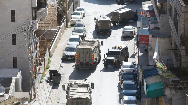 الجيش الإسرائيلي خلال مداهمة في مدينة نابلس بشمال الضفة الغربية. إي.بي.إيه