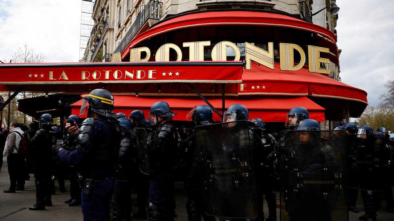 وضربت شرطة مكافحة الشغب طوقاً حول المطعم لحمايته في اليوم ال11 للاحتجاجات والإضرابات ضد مشروع ماكرون رفع سن التقاعد من 62 إلى 64 عاماً.