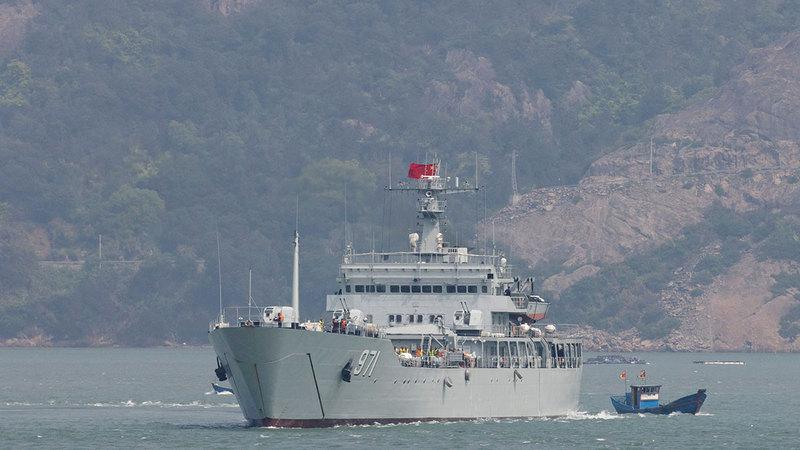 سفينة حربية صينية خلال التدريبات العسكرية بالقرب من تايوان. رويترز