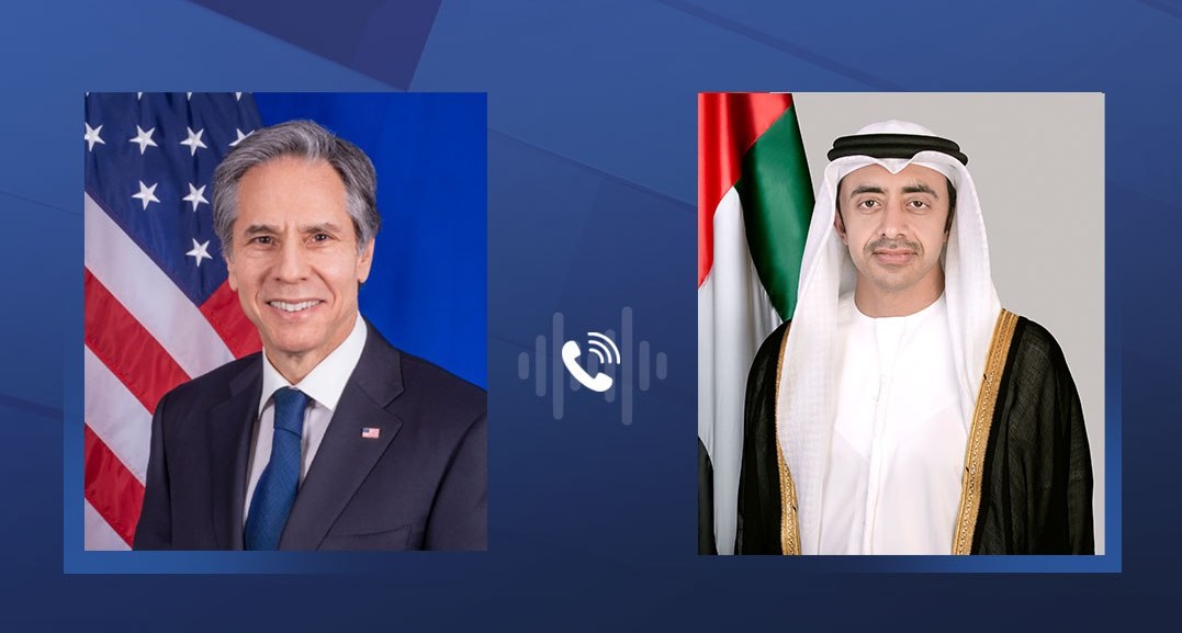 بحث سمو الشيخ عبدالله بن زايد آل نهيان وزير الخارجية والتعاون الدولي خلال اتصال هاتفي مع أنتوني بلينكن وزير الخارجية الأميركي تطورات الأوضاع في منطقة الشرق الأوسط.