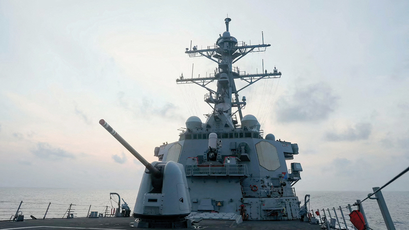 المدمرة الأميركية «ميليوس» خلال وجودها في بحر الصين الجنوبي. رويترز