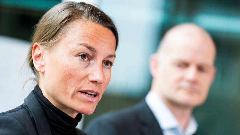 إنجر هوجلاند تتحدث خلال المؤتمر الصحافي.