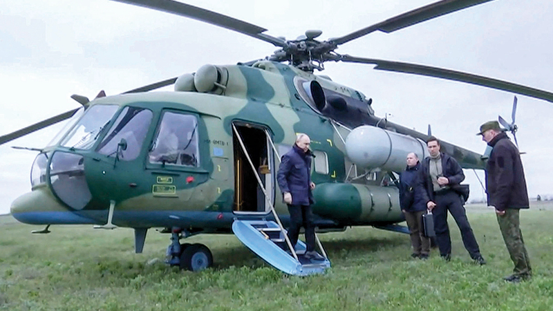 والتقى بوتين بقادة عسكريين روس وناقش الوضع على جبهات عدة، وظهر بوتين في تصوير مسجّل نشره الكرملين لدى نزوله من مروحية أثناء زيارته مقر قوات دنيبرو العسكرية في منطقة خيرسون، كما زار مقر الحرس الوطني في لوهانسك.