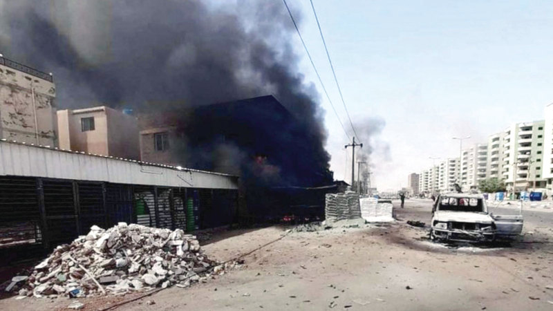 آثار الاشتباكات في أحد شوارع الخرطوم. أ.ف.ب