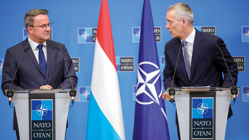 كزافييه بيتيل (يسار) وستولتنبرغ خلال مؤتمر صحافي في بروكسل. إي.بي.إيه