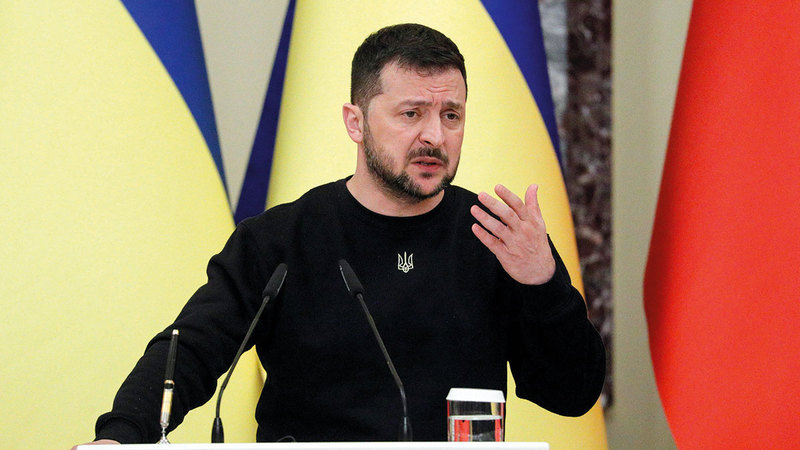 زيلينسكي أكد أن الدفاع عن مقر الرئاسة يتم بحزم شديد. أ.ف.ب