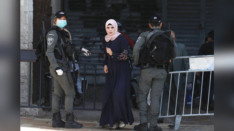 امرأة فلسطينية تمر عبر حاجز للشرطة الإسرائيلية في البلدة القديمة بالقدس. أ.ف.ب
