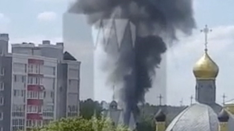 وأظهرت مقاطع فيديو، نشرت على وسائل التواصل الاجتماعي في روسيا، المروحية وهي تنفجر قبل أن تسقط على الأرض مشتعلة.
