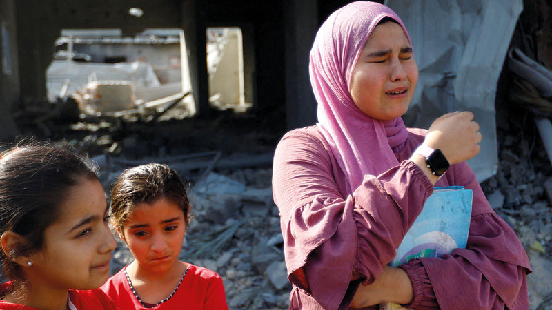 وقالت ريتاج أبوعبيد (12 عاماً) وهي تقف بين حطام غرفتها: «هاي غرفتي اللي كنت عايشة فيها، كان فيها ألعابي وكتبي اللي كنت أدرسها، ما في شيء ظل».