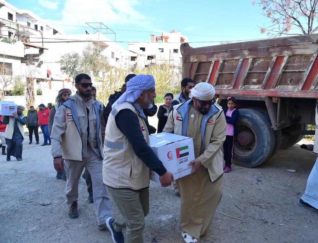 وتم إطلاق حملة "جسور الخير" بقيادة هيئة الهلال الأحمر الإماراتي وبمشاركة أكثر من 16 جهة مانحة إماراتية، وكان للهلال الأحمر الإماراتي الدور الأكبر في توزيع الطرود الغذائية على المتضررين وتوفير الاحتياجات الأساسية لهم ودعم المستشفيات بالأدوية علاوة على إقامة مخيم إيواء مؤقت للمتضررين من الزلزال يضم 50 خيمة، يتسع لثلاثمائة شخص مجهز بالأسرة والأغطية والإنارة بالطاقة الشمسية وطرود غذائية وذلك لتأمين الإيواء اللازم للمنكوبين والمتضررين جراء الزلزال في سورية.