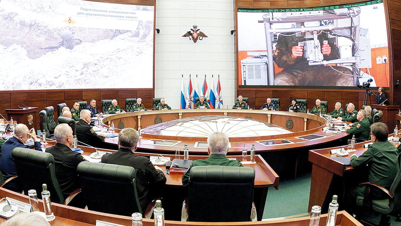شويغو يترأس اجتماعاً لمجلس وزارة الدفاع في موسكو. رويترز