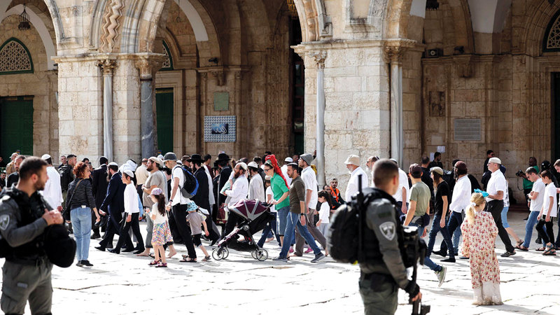 الشرطة الإسرائيلية نشرت عناصرها في باحات المسجد وعند أبوابه لتأمين الاقتحامات. أرشيفية