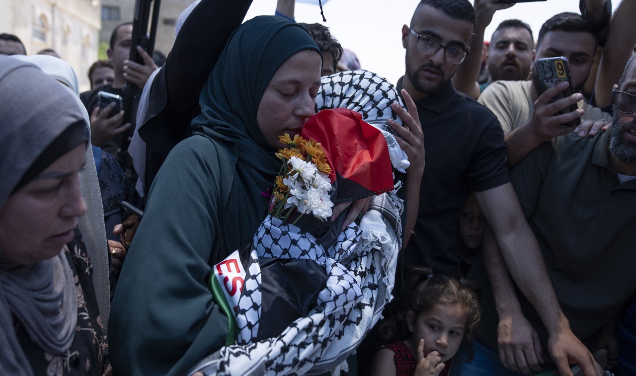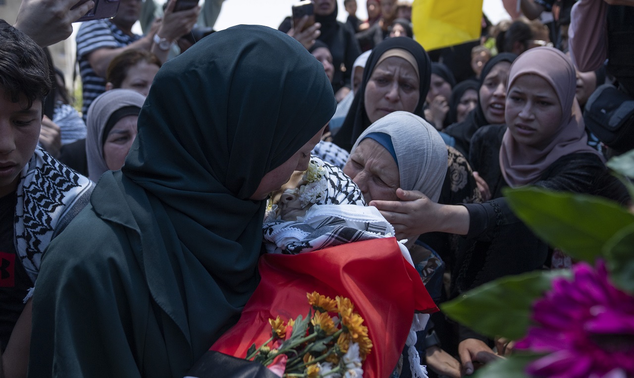 حملت الفلسطينية مروة التميمي طفلها للمرة الأخيرة، اليوم الثلاثاء، ووضعت راحتي يديها على خديه وانحنت لتطبع على جبينه قبلة الوداع.