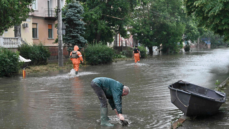 انهيار سد «كاخوفكا» تسبب في فيضانات بمناطق عدة. أ. ف. ب
