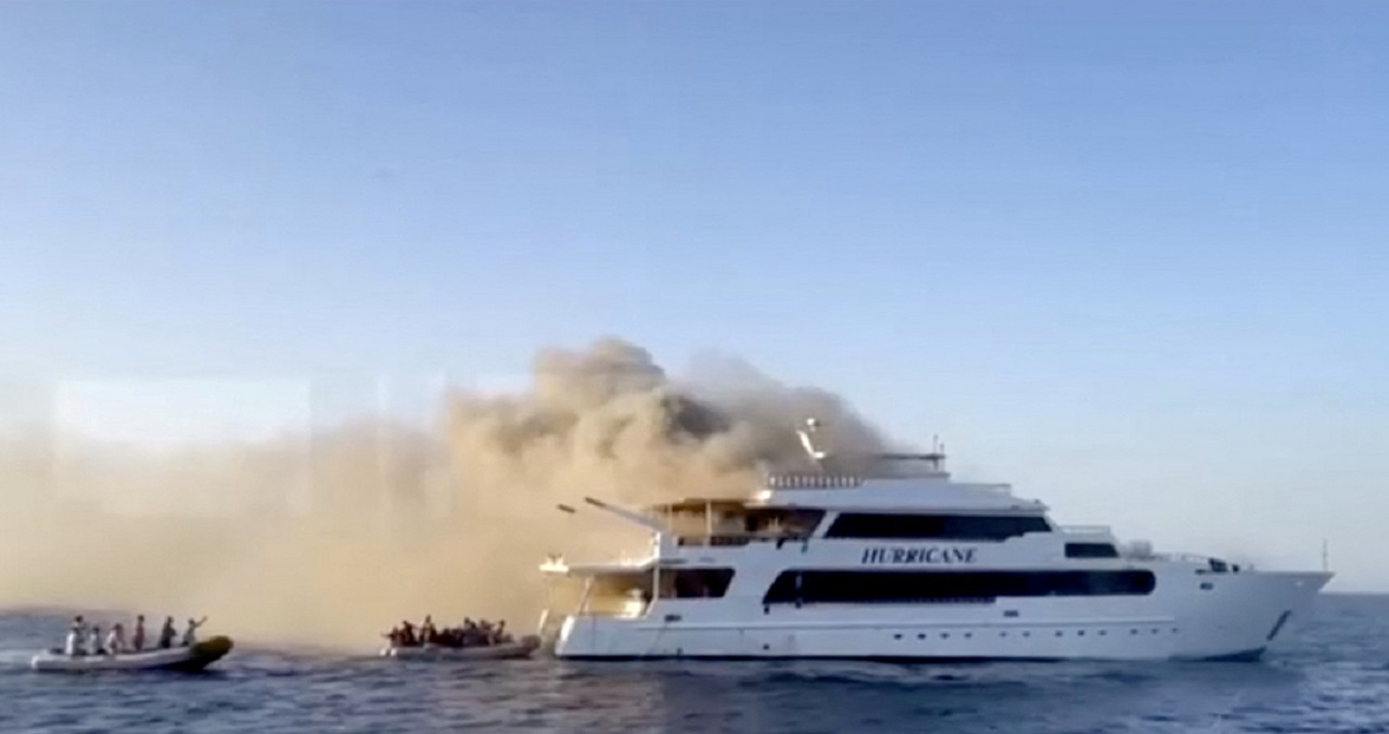 كان الزورق يمر قبالة شعاب الفينستون المرجانية قرب مرسى علم، في جنوب شرق مصر، عندما شب الحريق.