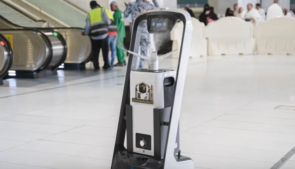 وأضاف الجابري: "يعمل 11 روبوتاً ذكيا للتعقيم حتى 8 ساعات دون تدخل بشري عبر خريطة مبرمجة مسبقاً لتعقيم أنحاء المسجد الحرام، و20 بايوكير مهام التعقيم بالبخار الجاف للهواء والأسطح في آن واحد وبسرعة عالية وبشكل فعال بمساحة تقدر بـ1000 متر مربع في كل ساعة، كذلك 20 جهاز تعقيم ضبابي يستخدم لتعقيم المناطق التي يصعب الوصول لها مثل الأسقف والأعمدة، و600 جهاز آلي لتعقيم الأيدي حديثة وعالية الجودة تعمل بخاصية عدم التلامس، يساندهم عدة فرق تعمل على تعقيم كافة جنبات المسجد الحرام وساحاته الخارجية ودورات المياه بأكثر من 70 ألف لتر من المعقمات، وفق آلية عمل تراعي أعلى المعايير الصحية العالمية في تنفيذ عمليات الوقاية البيئية ومكافحة الأوبئة بالمسجد الحرام.