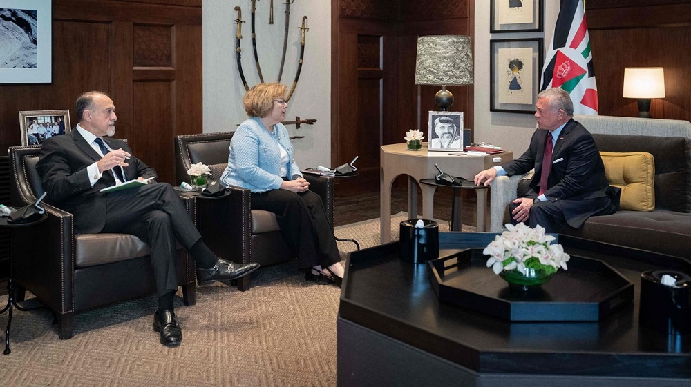 دعا العاهل الأردني الملك عبدالله الثاني الأحد خلال استقباله في عمّان مسؤولة أميركية إلى "خفض التصعيد" في الأراضي الفلسطينية، بحسب ما أفاد الديوان الملكي.