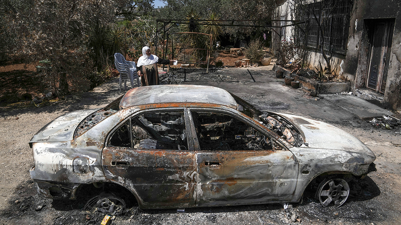 وكان من بين الهجمات قيام مستوطنين، أول من أمس، بإضرام النار في منزلين على الأقل بقرية أم صفا الفلسطينية القريبة من رام الله. وقال الجيش الإسرائيلي إنه ألقى القبض على مشتبه فيه واحد على الأقل.وندد وزير الدفاع الإسرائيلي يوآف غالانت بالهجوم، وقال قادة الجيش والشرطة وجهاز الأمن الداخلي في إسرائيل في بيان مشترك، إن «أفعال المستوطنين ترقى إلى حد الإرهاب القومي»، وتعهدوا بالتصدي لتلك الأعمال.