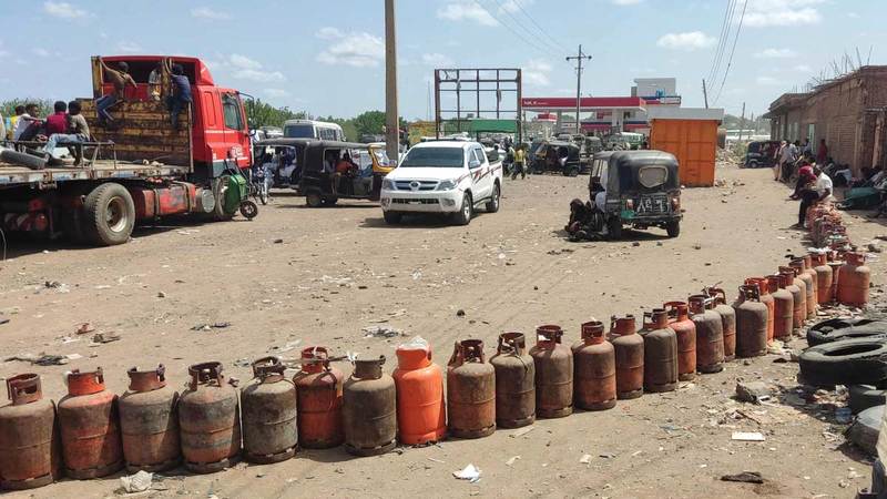 سودانيون ينتظرون شحنة أسطوانات الغاز في القضارف في ظل تأزم الأوضاع في البلاد. أ.ف.ب