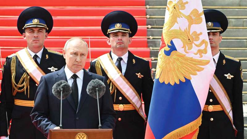 شكر الرئيس الروسي فلاديمير بوتين، أمس، العسكريين الذين حالوا دون وقوع «حرب أهلية» خلال تمرد مجموعة فاغنر المسلحة التي تم الصفح عن عناصرها ووقف الإجراءات ضدها في الوقت الراهن لكن طلب منها تسليم أسلحتها الثقيلة.