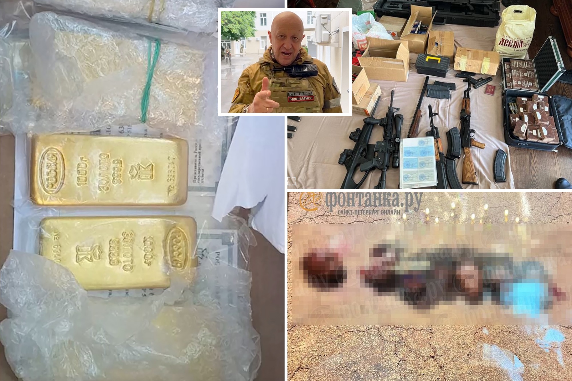 وكشف البحث في قصر رئيس مجموعة فاغنر يفغيني بريغوجين عن مجموعة من الشعر المستعار وسبائك الذهب والأسلحة وصورة مؤطرة برؤوس مقطوعة.