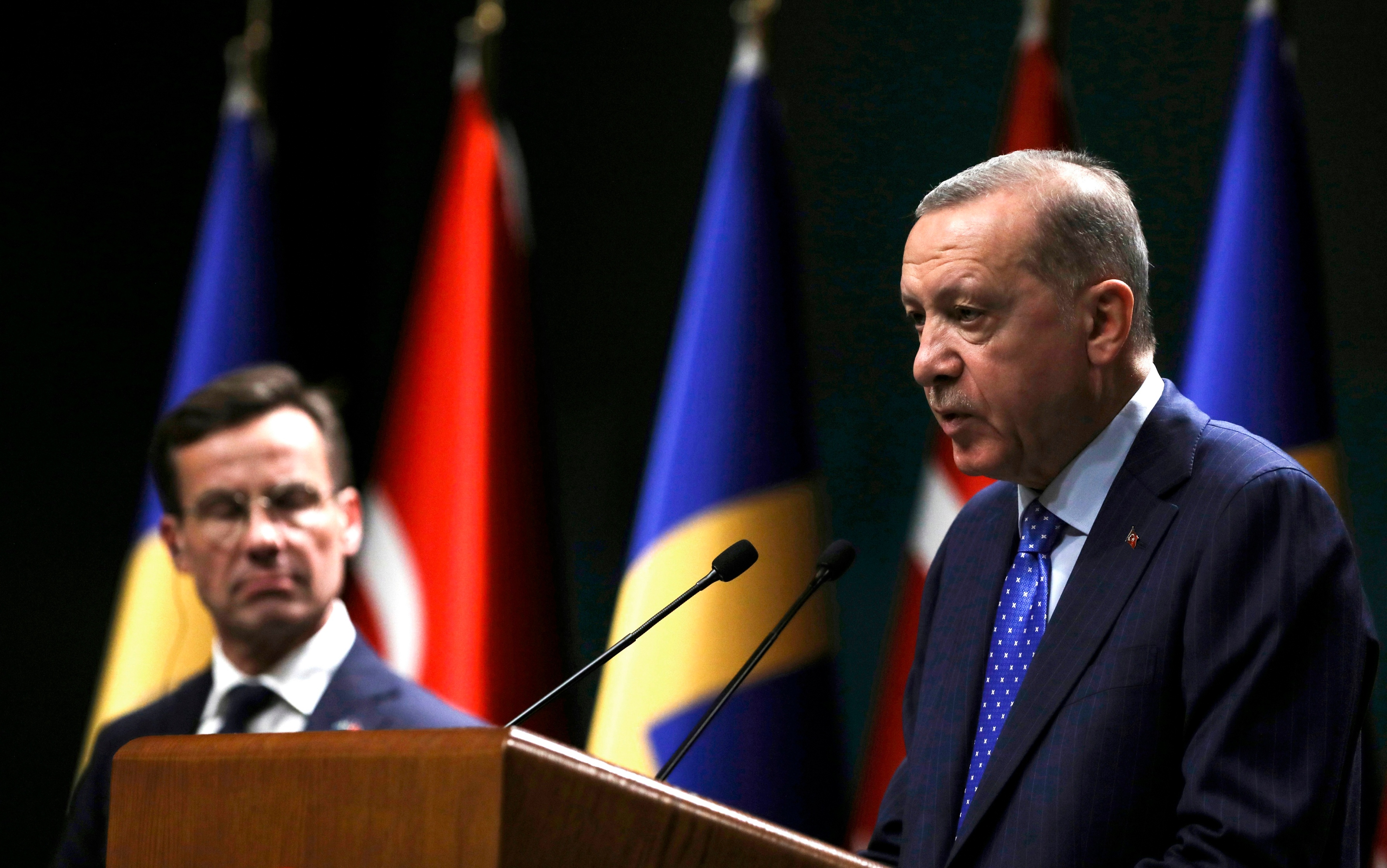 أعلن الرئيس التركي رجب طيب إردوغان الإثنين أنّه سيدعم عضوية السويد في حلف شمال الأطلسي بشرط أن يعيد الاتّحاد الأوروبي إطلاق مفاوضات انضمام بلاده للتكتّل القاري.