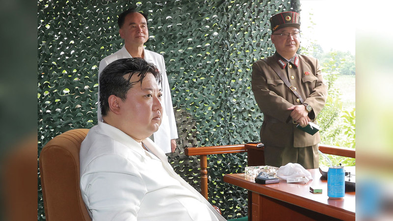 كيم جونغ أون يحضر اختبار إطلاق صاروخ باليستي يوم 12 يوليو الجاري. إي.بي.إيه