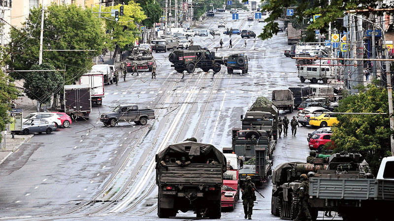 عناصر «فاغنر» في مدينة روستوف خلال محاولة التمرد الشهر الماضي. أرشيفية