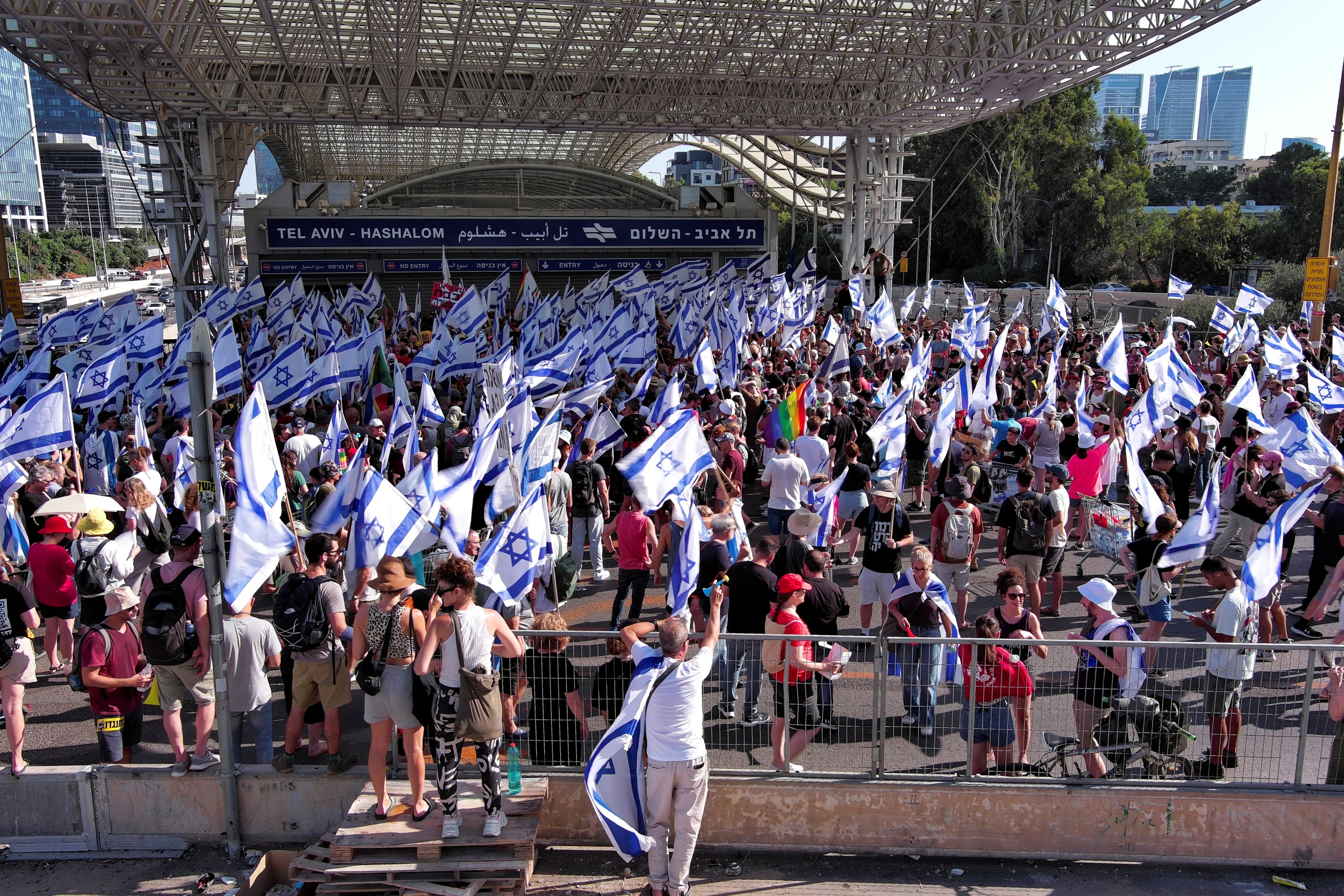 إسرائيليون يتظاهرون ضد قانون الإصلاح القضائي. رويترز