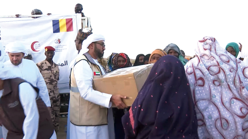 الفريق الإنساني يوزع الطرود الغذائية على اللاجئين السودانيين. وام