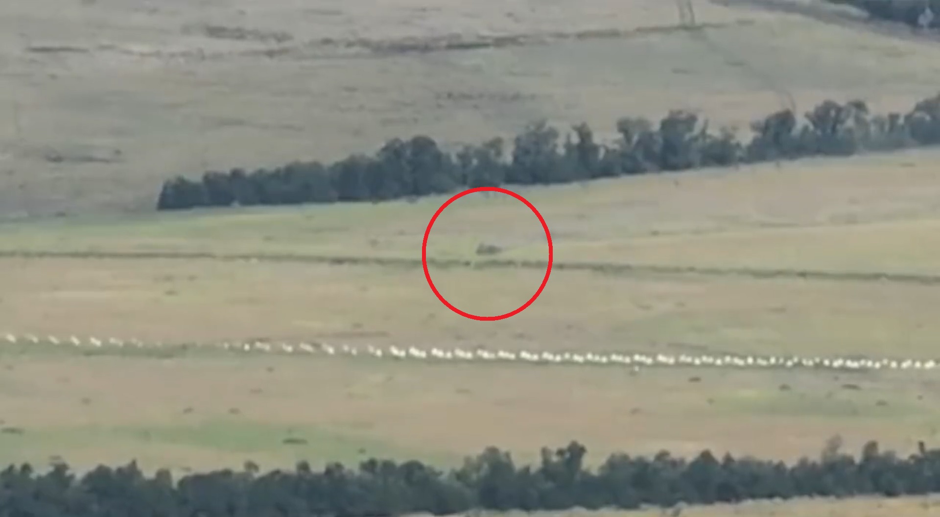 تم التقاط الفيديو من موقع عسكري روسي ويظهر مركبة عسكرية أوكرانية تتحرك في حقل، متجهة نحو خندق أمام صف كبير من القطع الخرسانية المثبتة على حواجز مضادة للدبابات في تكتيك يعرف باسم "أسنان التنين".