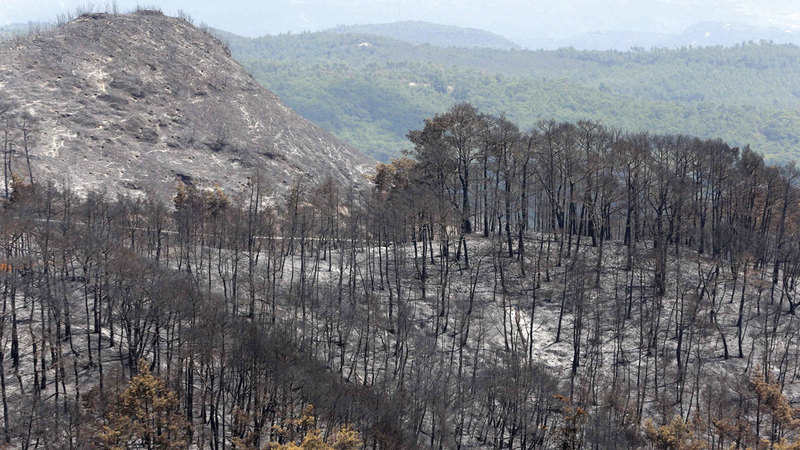 إحدى المناطق التي تضررت جراء الحرائق في اللاذقية. أ.ف.ب