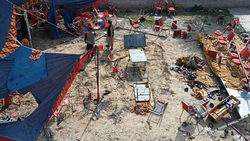 وكان أكثر من 400 من أعضاء وأنصار الحزب يتجمعون تحت خيمة عند وقوع الهجوم، وتناثرت الأحذية الملطّخة بالدماء وقبّعات صلاة في المكان، إلى جانب مسامير فولاذية وكرات حديد صغيرة من السترة الناسفة التي كان يرتديها الانتحاري، وقال فضل أمان الذي كان بالقرب من الخيمة عندما انفجرت القنبلة، لوكالة فرانس برس: «رأيت مشهداً مدمراً، جثثاً مبعثرة على الأرض، وكان الناس يصرخون طلباً للمساعدة».