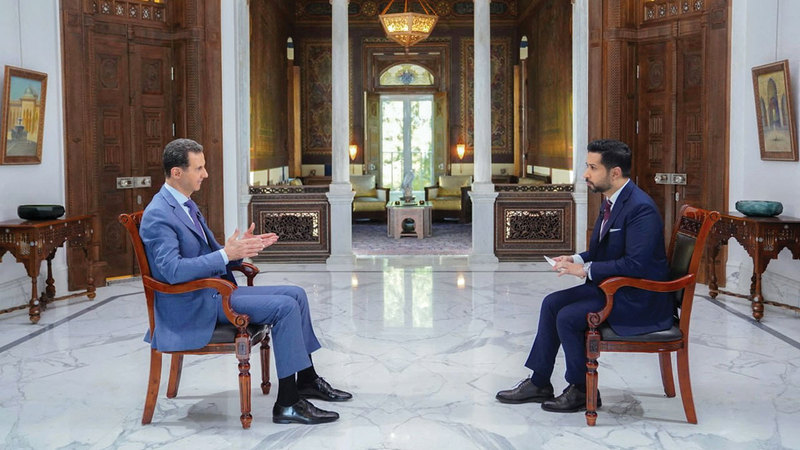 الأسد خلال مقابلته مع مراسل قناة «سكاي نيوز عربية» في دمشق. رويترز
