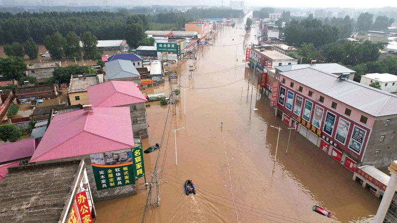 الفيضانات اجتاحت مناطق عدة في الصين بسبب الإعصار «دوكسوري». أ.ف.ب