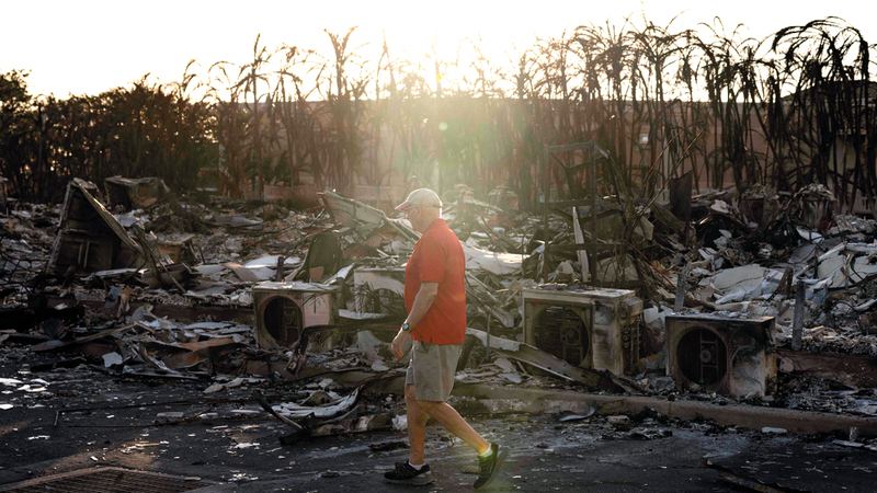 لاهاينا ■ أ ف ب / بعد اندلاع حريق غابات أجّجته الأعاصير في مدينته، يأتي أنتوني غارسيا يومياً إلى ساحة اعتادت أن تكون مليئة بالسياح لكنها باتت مغطاة بالحطام المتفحم وبقايا رماد وحيوانات محترقة.