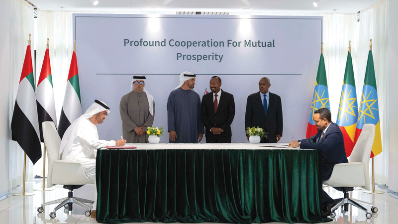 وشهد صاحب السمو الشيخ محمد بن زايد آل نهيان، رئيس الدولة، ورئيس وزراء إثيوبيا آبي أحمد، توقيع مذكرات تفاهم واتفاقيات بين العديد من الجهات في البلدين، تهدف إلى تطوير علاقات التعاون والشراكة التنموية وتنويع مجالاتها في مختلف الجوانب التي تدفع التنمية والازدهار في دولة الإمارات وإثيوبيا.