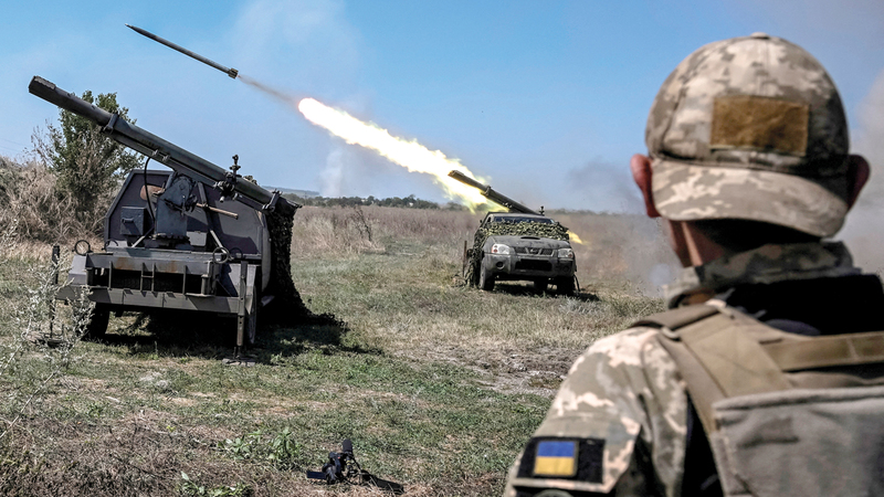 جنود أوكرانيون يطلقون الصواريخ باتجاه القوات الروسية بالقرب من خط المواجهة في منطقة زابوريجيا. رويترز