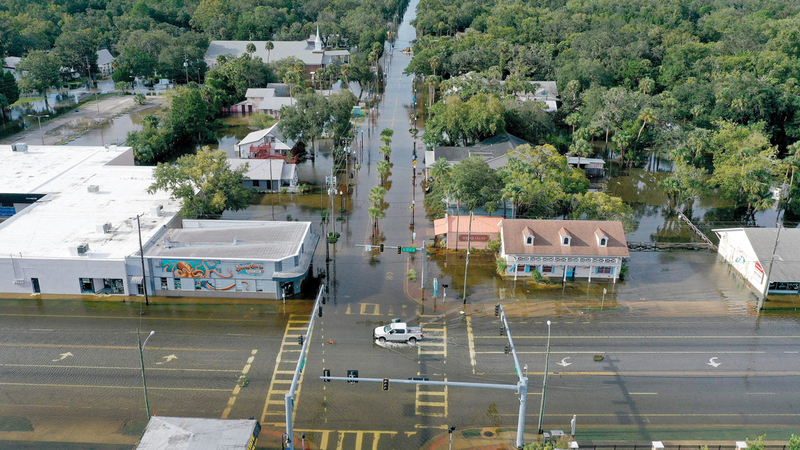 مياه الأمطار غمرت شوارع عدة في فلوريدا جراء الإعصار. أ.ف.ب