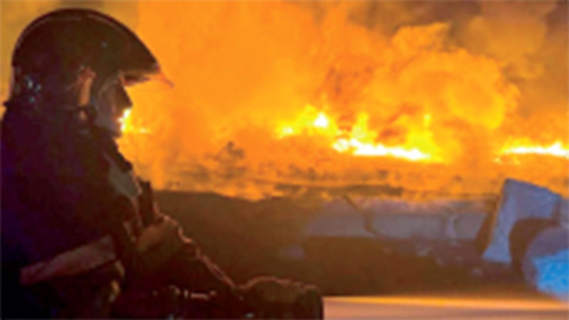 محاولة إطفاء حريق في أوديسا اندلع جراء هجوم بطائرات مسيرة. رويترز