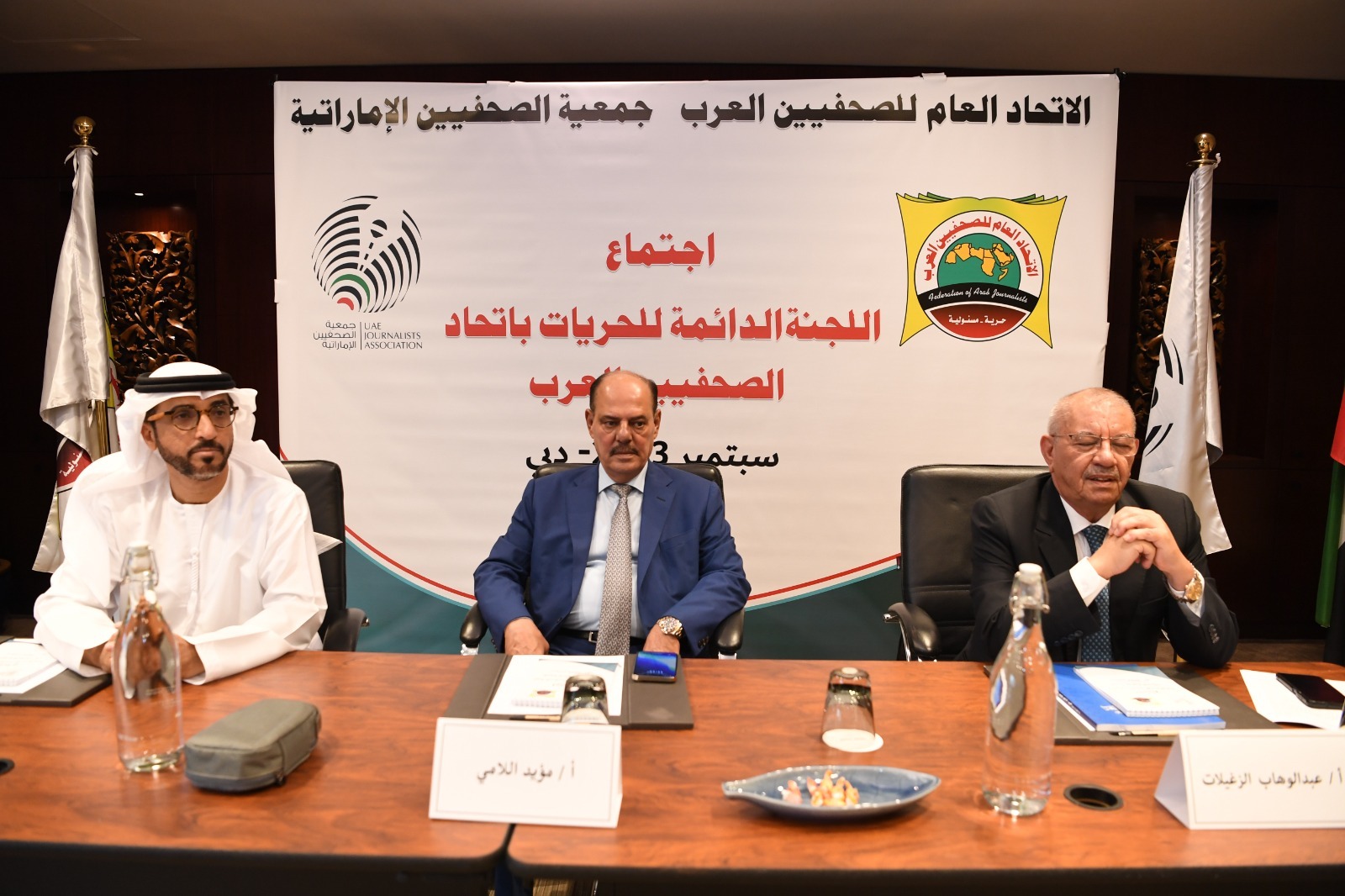 من جانبه، أعرب رئيس لجنة الحريات في الاتحاد العام للصحفيين العرب عبد الوهاب الزغيلات، بسعادته الكبيرة بوجوده في دبي واجتماعه مع الزملاء الصحفيين من الوطن العربي لمناقشة واقع الحريات الصحفية.